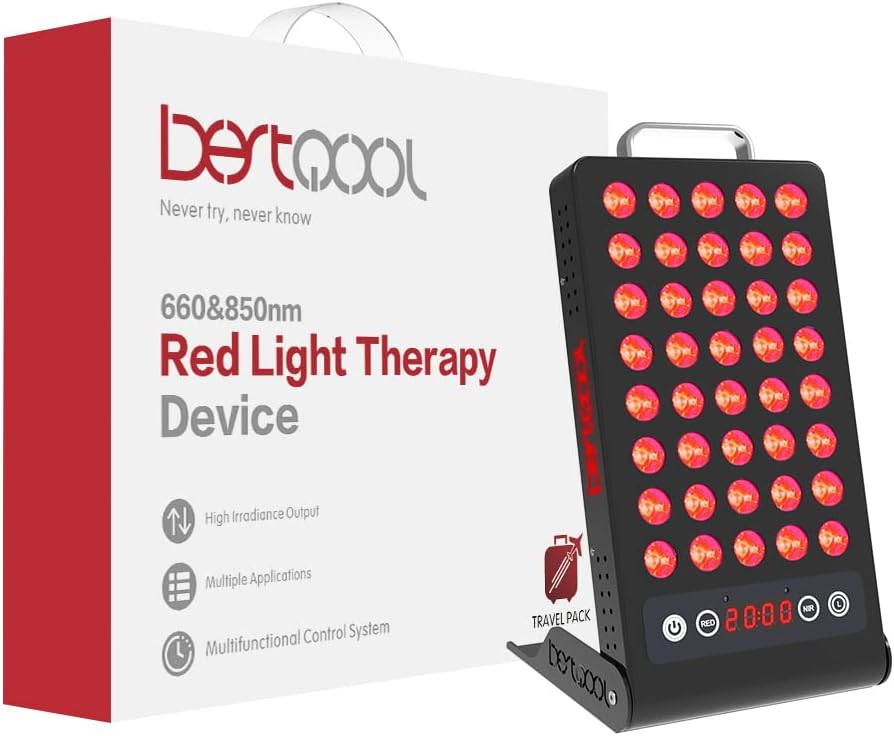 Bestqool Red Light Therapy for Face, Body. Portable Red Light Therapy Dual Chip 660nm 850nm, High Irradiance Clinical Grade Red Light Therapy Lamp for Skin Health, Pain Relief, Fast Recovery. 50W.